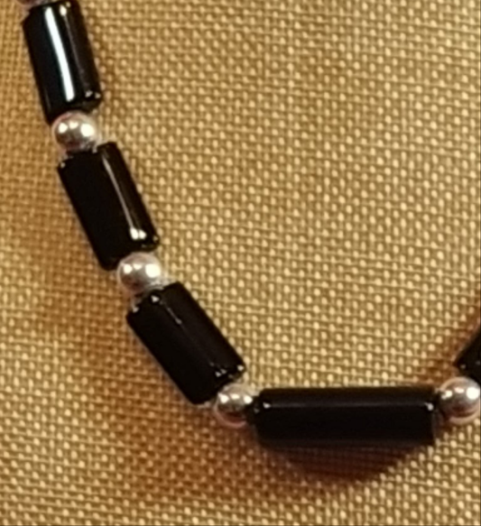 Almohadillas y cilindro en obsidiana con perlas de plata - Collar princesa